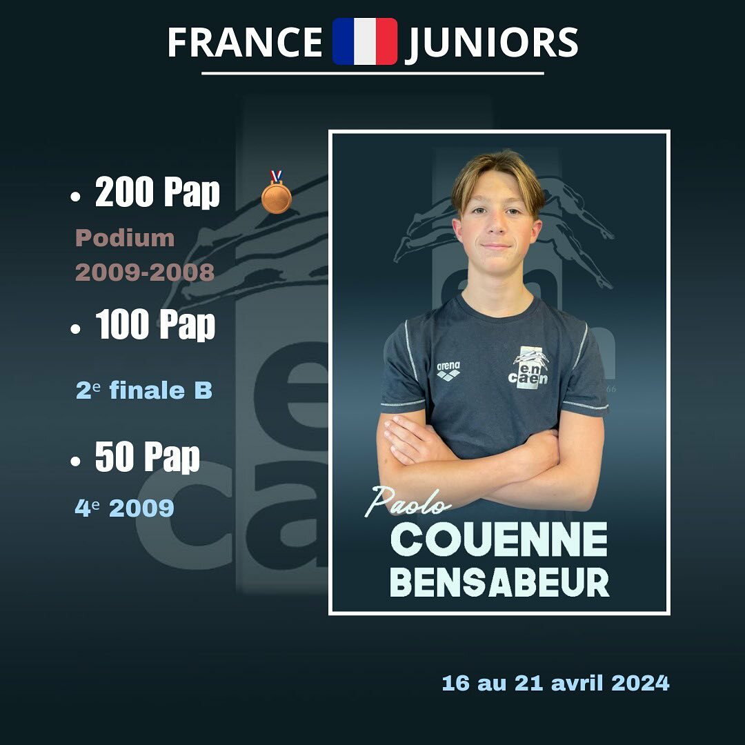Formé au club et nageant pour L'EN Caen, nous sommes très fiers de lui !! Bravo !